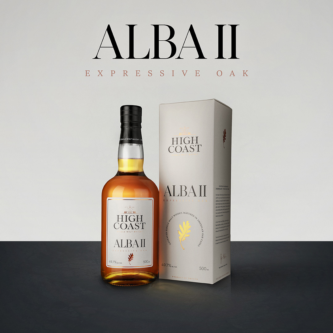 The American oak, Quercus Alba and our fruity new-make are a union of two continents, a result that has been characterised by the northern climate over time. Expect the same finesse between the vanilla notes of the American oak and the bourbon barrels that have had almost ten years to develop, where we have allowed the oak's flavours to take centre stage without competing with smoke. Our new make work well with Quercus Alba, both with smoke and without, as several blind tastings have shown over the years. Comments from festivals about Alba have clearly shown the same, the combination therefore deserves its own series where this will be the second one. Enjoy an unpeated whisky packed with toffee, vanilla and the fresh fruitiness of the spirit, enjoy Alba II.